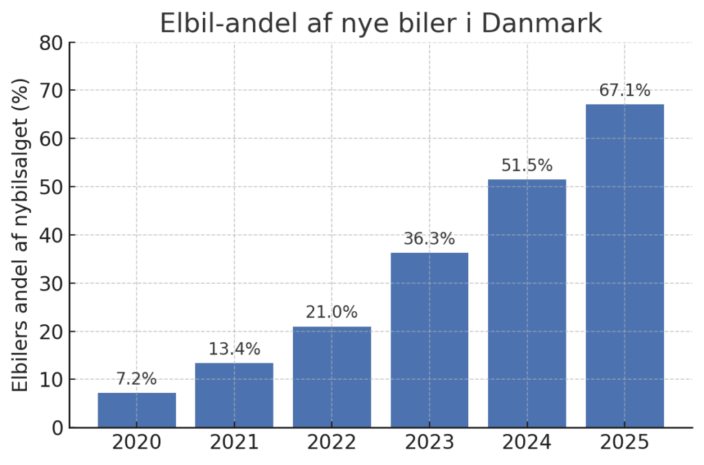 Rekordår 2025: To tredjedele af nye biler er elektriske